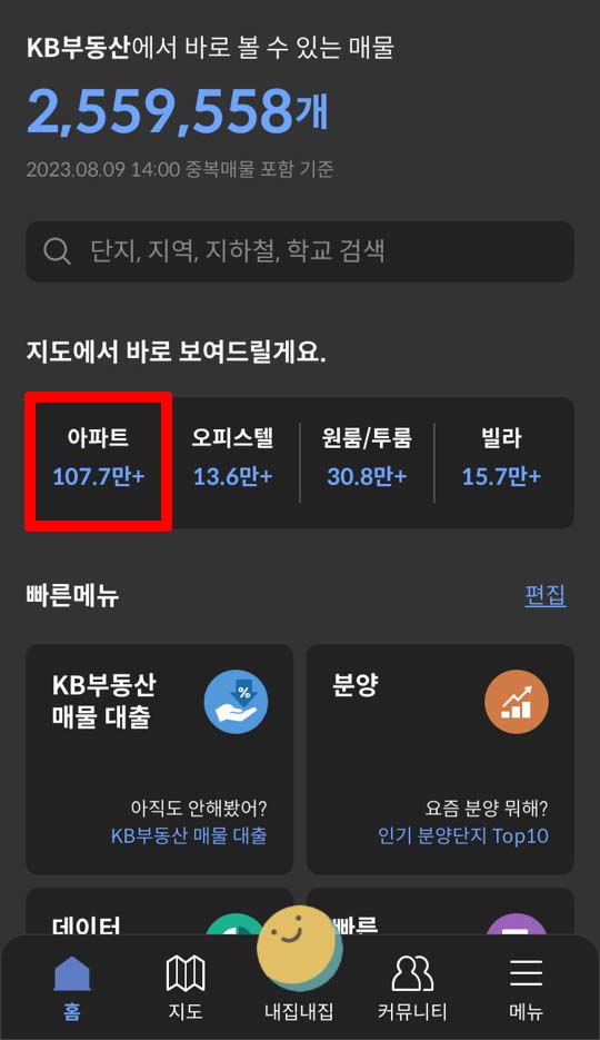 'KB부동산' 홈페이지 or 'KB부동산 어플리케이션' 다운로드
