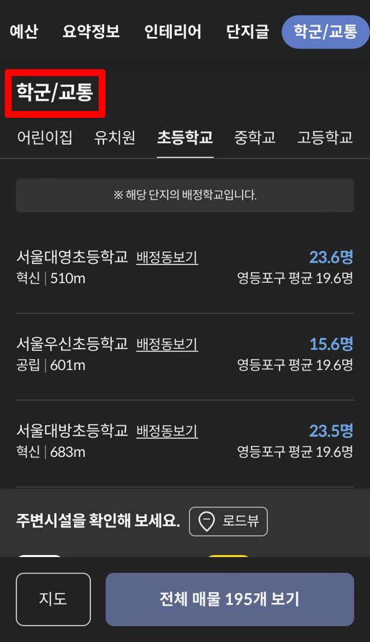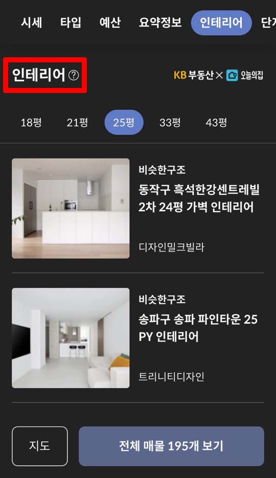 ※ KB부동산에서는 실거래가 뿐만 아니라 인테리어 정보, 학군/교통 등의 입지 관련 내용도 한눈에 볼 수 있습니다.