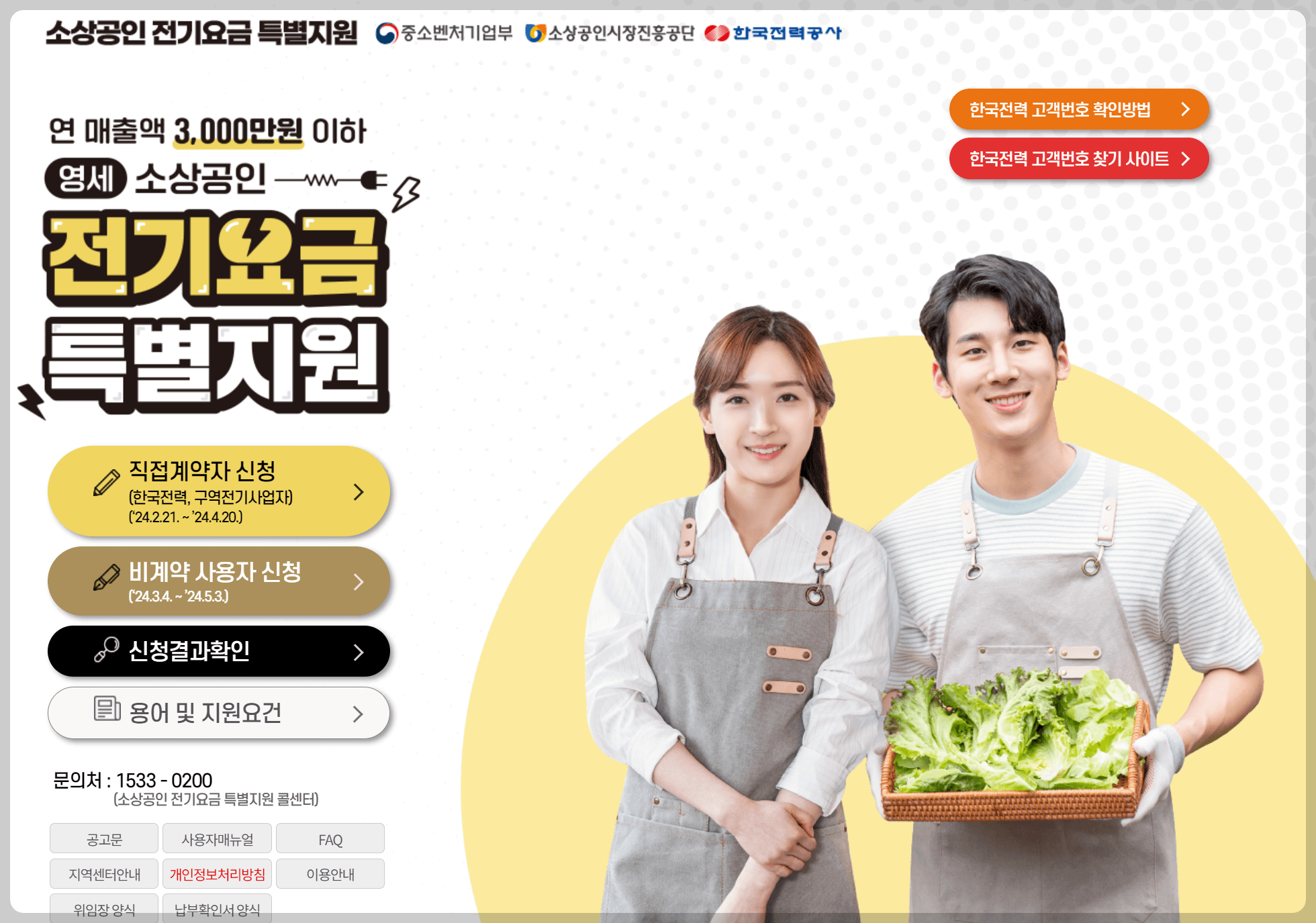 - 콜센터 : 소상공인 전기요금 특별지원 콜센터 (☎ 1533-0200)