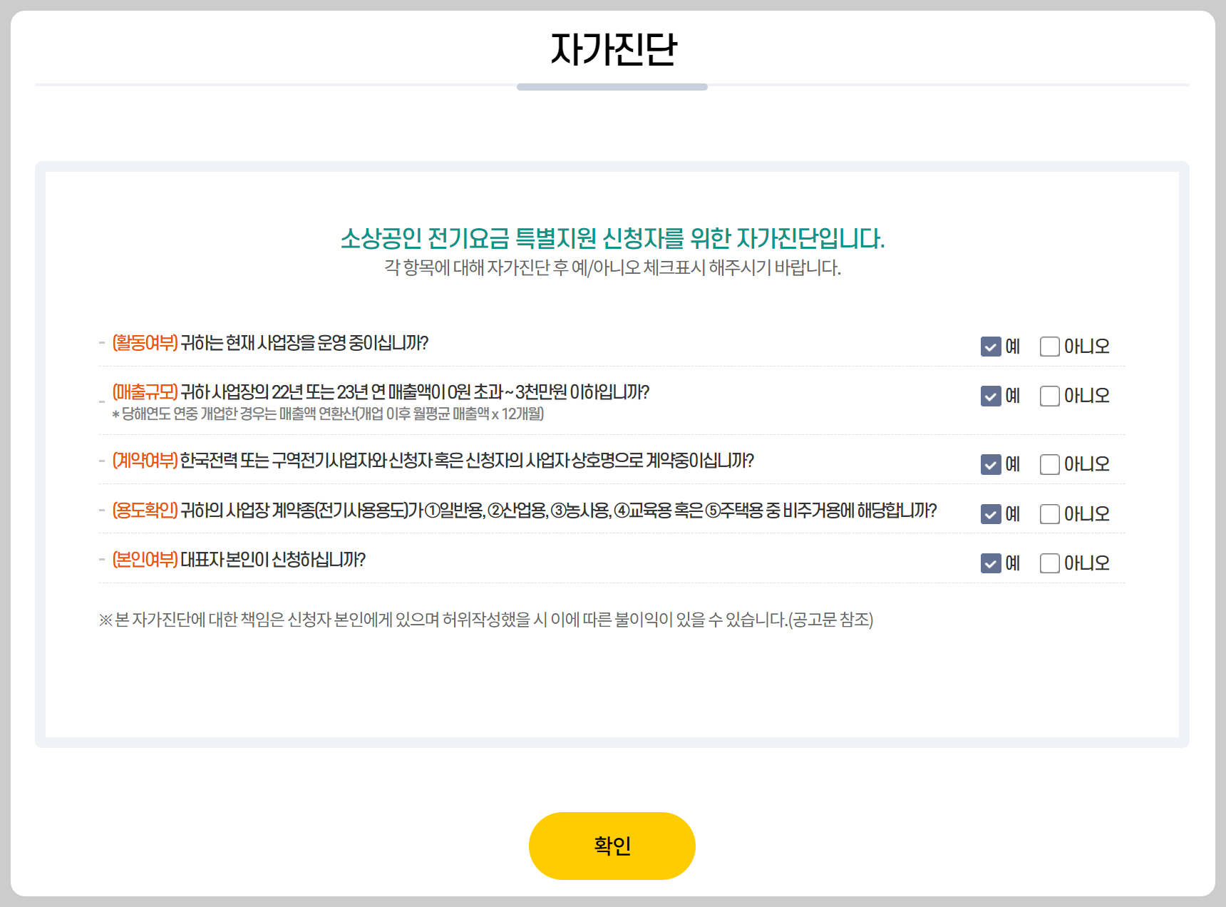 - 누리집 : 소상공인 전기요금 특별지원kr