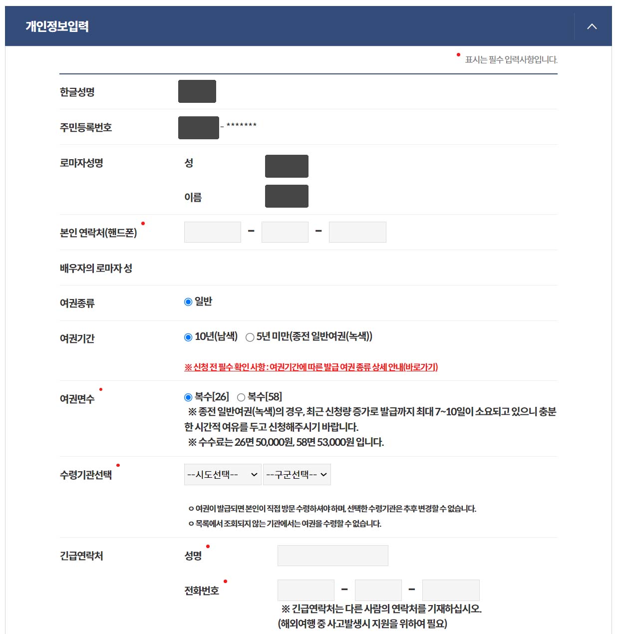 ① 여권발급신청서