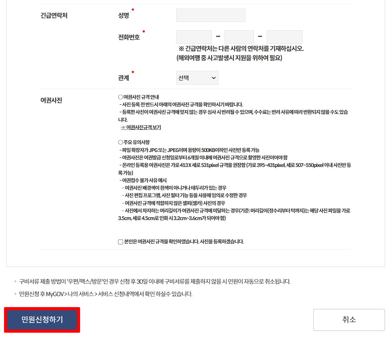 ① 여권 발급 신청서 (민원기관 구비)