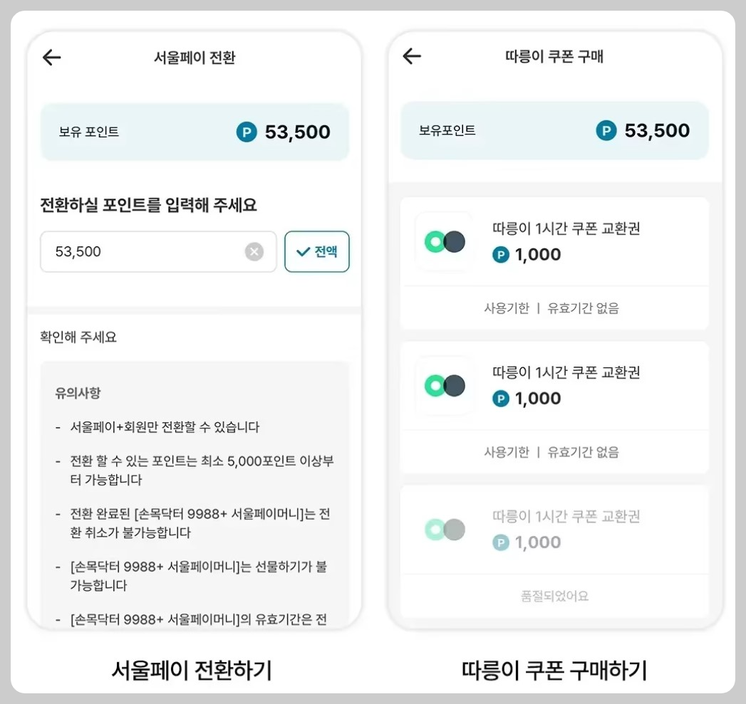 적립된 포인트는 서울페이머니로 전환하여 병원, 약국, 헬스장, 안경점 등에서 실제 현금처럼 사용이 가능합니다. 전환하시려면 먼저 아래에에서 서울페이 앱을 다운로드하세요.
