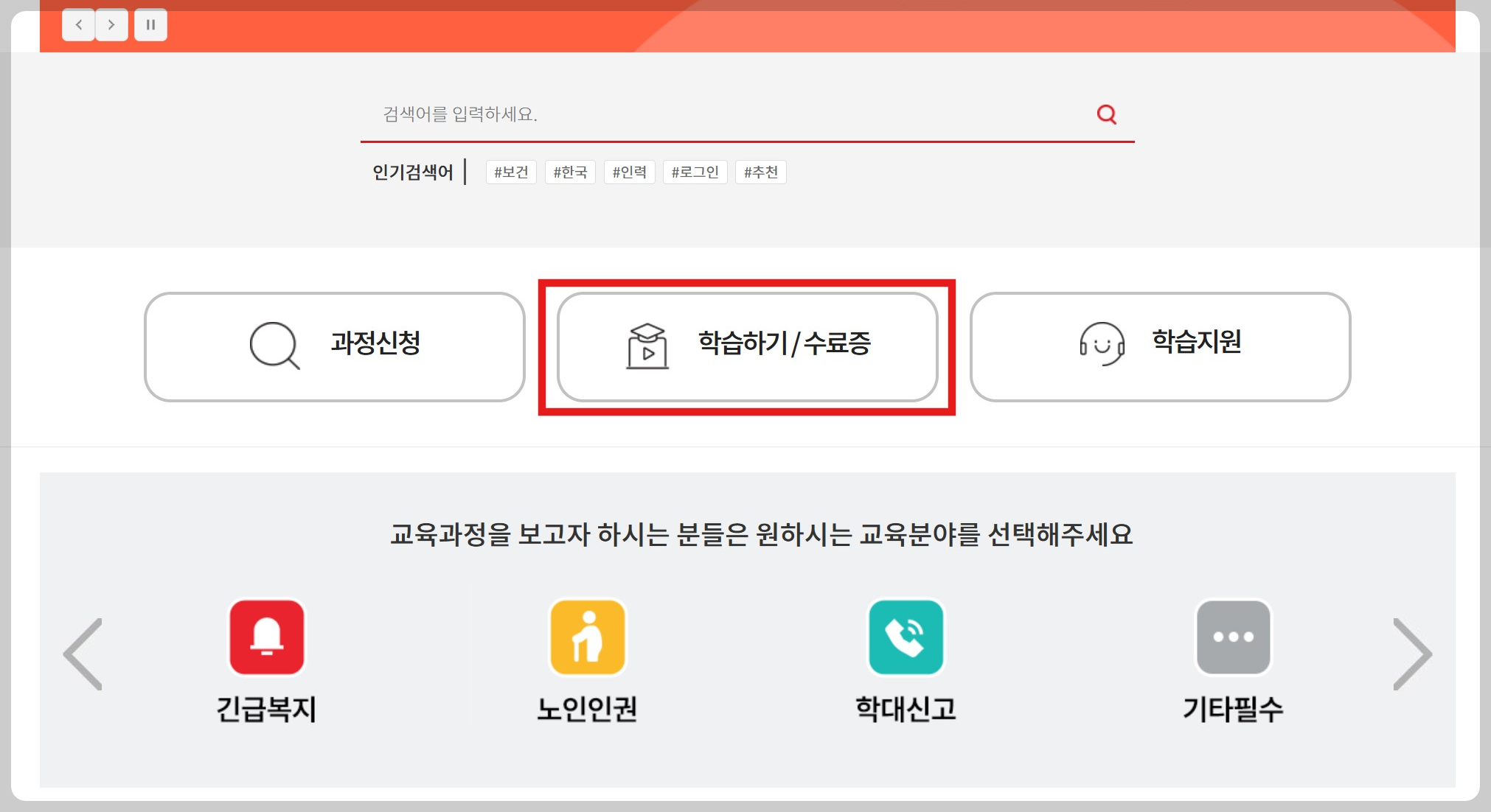 근무처 제출에 필요한 수료증은 홈페이지 메인화면 [수료증] 버튼에서 출력가능합니다. 아래에서 바로 진행해보세요.