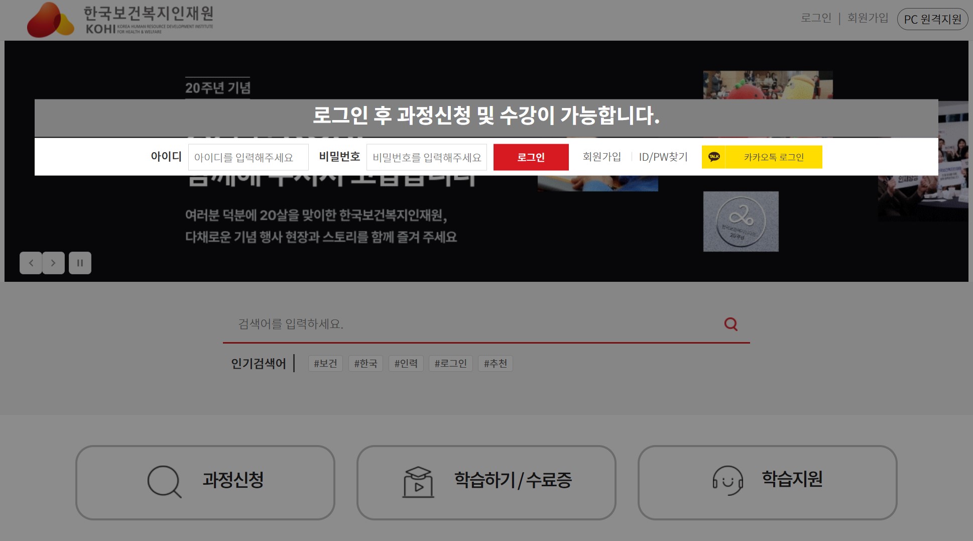 KOHI 의무교육은 노인 보건 및 복지 분야 종사자라면 매년 필수로 이수해야하는데요, 총 4시간의 교육만 받으시면 됩니다. 아래에서 빠르게 수강신청이 가능하니 바로 진행해보세요.