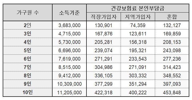 2024년 건강보.험.료 소득판정 기준표 (기준 중위소득 100%)